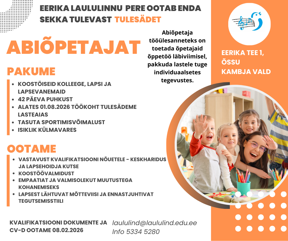 Tule ja liitu meie rõõmsameelse seltskonnaga ja anna oma panus lapse maailma paremaks muutmisel.